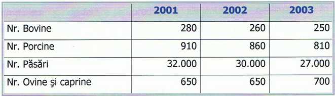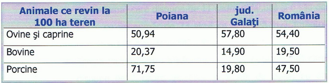 Activitatea de creştere a animalelor şi de producţie zootehnică, inclusiv modul de asigurare a autoconsumului cu aceste produse o vom prezenta în tabelul următor, conform datelor de la Primăria comunei Poiana: