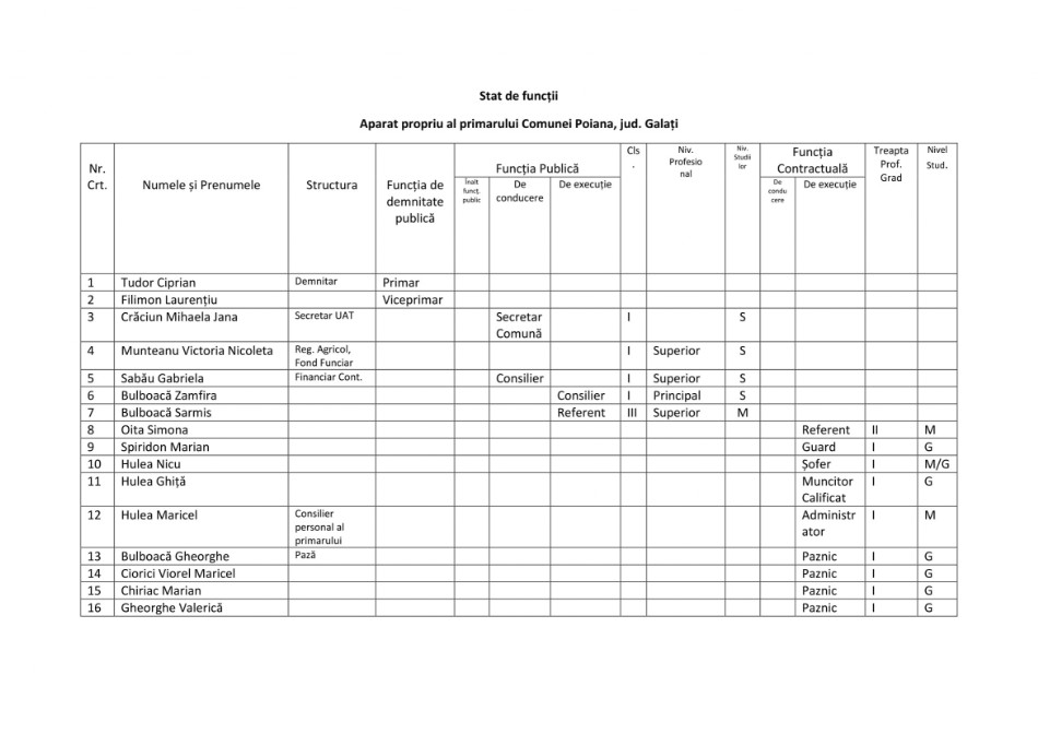 Organigrama - Primaria Comunei Poiana Jud. Galati